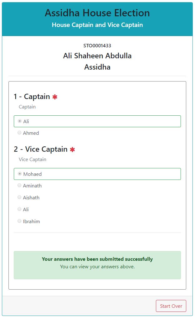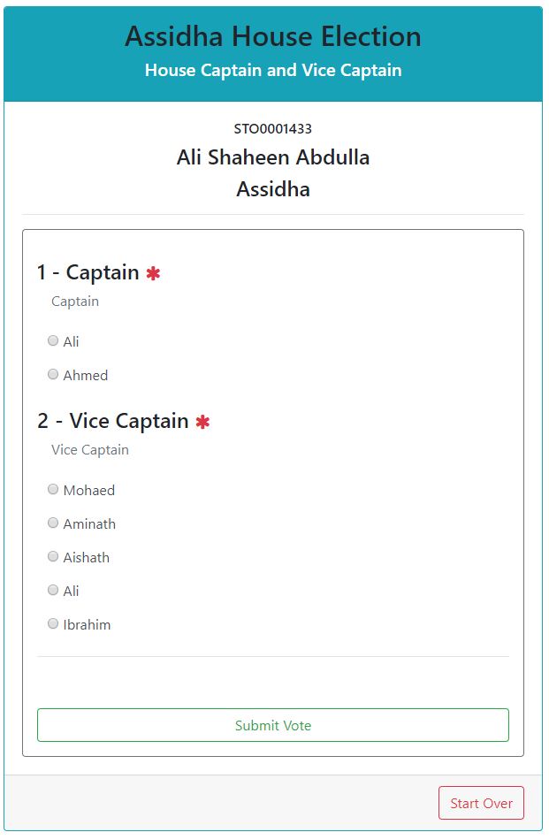Screen shows the result page of your Vote.